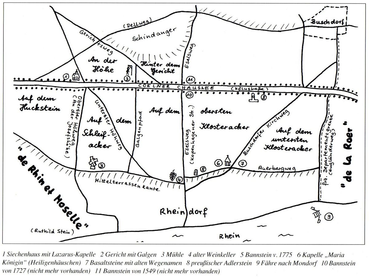Auf alten Karten finden sich unweit der Kölnstraße die Wegenamen „Gerichtsweg“ und „Galgenpfad“. Diese Wege führten zum Schindanger und Bonner Hochgericht mit Galgen und Rädern (bis Ende des 18. Jh. genutzt) am Südrand des viel später angelegten Nordfriedhofs. Denn der entstand erst ab 1884 und stellt mit seinen Erweiterungen heute den größten Friedhof Bonns dar. Von 1980 bis 1992 (Verlegung des Bundeshauptstadtsitzes nach Berlin 1991) fanden hier im Rahmen von offiziellen Staatsbesuchen auch die Kranzniederlegungen am Mahnmal „Den Opfern der Kriege und Gewaltherrschaft“ statt. Mehrere Wege aus dem Umland führten zur Wind- und benachbarten Wassermühle am Rheindorfer Bach, die wohl schon seit dem Mittelalter bis zu ihrem Abbruch 1899 in Betrieb waren. Im Umfeld des Nordfriedhofs wuchsen entlang der Kölnstraße die ersten Wohnhäuser, bis 1913 sechs Gebäude mit ca. 40 Einwohnern. Seit 1906 stand den Bürgern der Bahnhof „Bonn-Nord“ der Rheinuferbahn zur Verfügung. Die Bahntrasse verlief bis 1968 auf der Rückseite des Nordfriedhofs und ist im Gelände bis Buschdorf erkennbar geblieben; der Bahnhof stand etwa am Ende der heutigen Friedrich-Wöhler-Straße/Ecke Nordfriedhof. Dieser Bahnanschluss begünstigte 1917 die Ansiedlung eines Eisenwalzwerks, das 1927 von der „Vereinigte Leichtmetallwerke GmbH“ übernommen wurde und trotz mehrerer Eigentümerwechsel auch gegenwärtig („Norsk Hydro“) der Aluminiumverarbeitung treu geblieben ist.