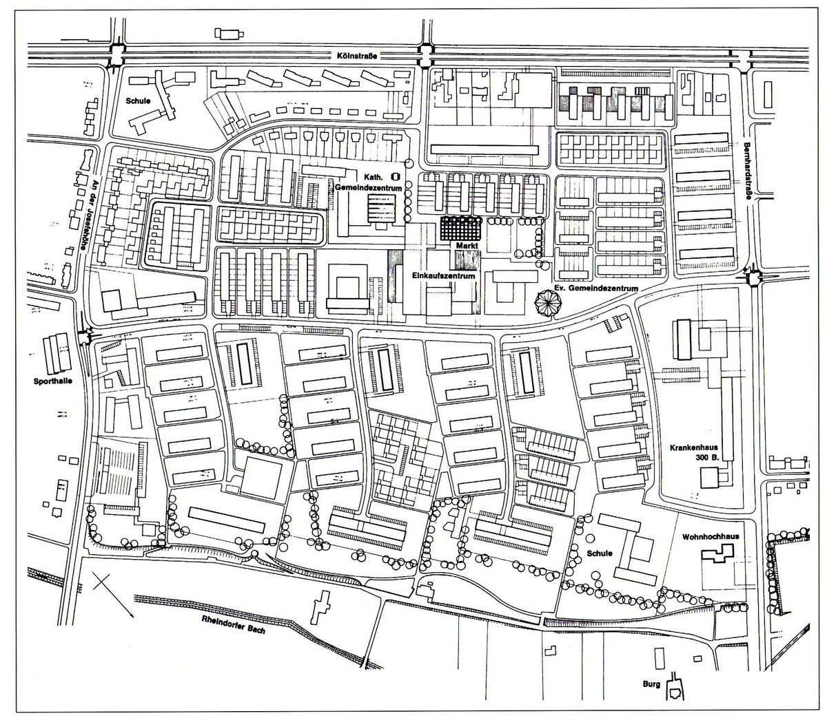 Der Bau der katholischen St.Bernhard-Kirche am Rand der Nordrandsiedlung 1955/56 markierte einen wichtigen Schritt in der weiteren Entwicklung der Besiedlung. Infolge reger Bautätigkeit war die Einwohnerzahl bis 1961 gegenüber 1939 nahezu verdoppelt (1.828 E.) und sie verdoppelte sich bis 1970 erneut auf 3.780. Die Bebauung der Seehausstraße und die Bungalow-Siedlung links und rechts der Flensburger Straße waren hinzugekommen. Wäre der Plan des Jahres 1963 komplett umgesetzt worden, das gesamte freie Feld zwischen Josefshöhe, Köln- und Kopenhagener Straße massiv zu bebauen (vergleichbar Neu-Tannenbusch), hätte man bald mindestens weitere 15.000 Einwohner gehabt. Wo sich heute die Bernhardschule, der Bürgerplatz und das „Studierendenwohnheim Pariserstraße“ befinden, plante man damals ein Wohnhochhaus und Krankenhaus mit 300 Betten. Der Standort des Evangelischen Gemeindeforums Auerberg (1974 eingeweiht) entspricht beinahe dem Plan.