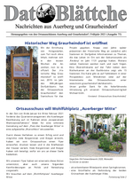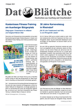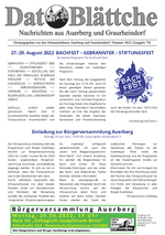 Themen u.a.: Bücherschrank in Auerberger Mitte eröffnet | Heiligenhäuschen wird 70 | Klausurtagung des Ortsauschuss Auerberg zu Kommunikation | Interview mit Schatzinsel-Gründer Reinhard Tetenborg | Ortsausschuss Auerberg jetzt gemeinnützig | Stadtrat einstimmig für "Rheinaue-Nord" | 3 MB