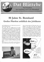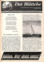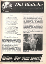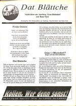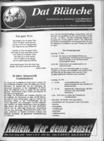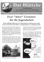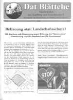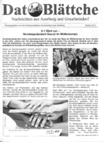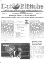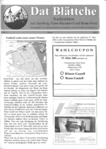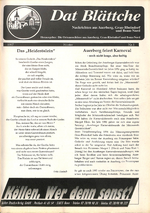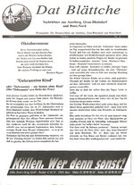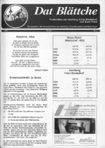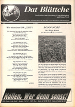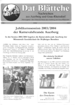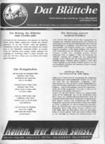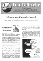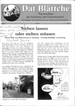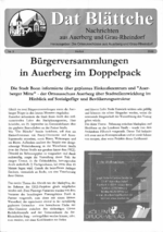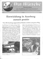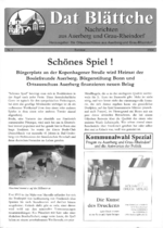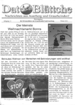 Alles hat seine Geschichte. Und wenn man nicht alles wegwirft, ergibt sich die Chance, einen Moment innezuhalten und in alten Unterlagen zu schmökern! Wer hätte gedacht, dass es „Dat Blättche“ mit den Nachrichten aus Auerberg, Graurheindorf und lange Jahre auch aus Bonn-Nord (als es noch nicht Castell hieß) schon seit 1995 gibt. Pro Jahr erscheinen in der Regel drei Ausgaben. Der Umfang betrug anfangs 16 Seiten und stieg im Laufe der Zeit auf 20 bis 24 Seiten an. Natürlich war die Auflage bis zum Heft 1/2003 mit 10.000 Exemplaren höher als heute, da bis dahin auch der Ortsausschuss Bonn-Nord mitgemacht hat. In Auerberg kommen 4.800 und in Graurheindorf 1.600 Hefte, insgesamt also 6.400 Hefte kostenlos in alle Haushalte. Das verdanken wir den Inserenten, ohne deren Unterstützung „Dat Blättche“ nicht erscheinen könnte. Hinzu kommt aber auch der ehrenamtliche Einsatz der Redaktion und der Mitglieder der Ortsausschüsse, die als Blättche-Verteiler bei Wind und Wetter von Haus zu Haus gehen.
