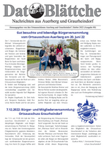 Themen u. a.: Erfolgreicher Bürgerantrag des Ortsausschusses Auerberg | 85 Jahre Siedlergemeinschaft | Sanierungsarbeiten am Mühlenstump | Auerberg und Graurheindorf von oben | Lebendiger Adventskalender 2018 | 3 MB